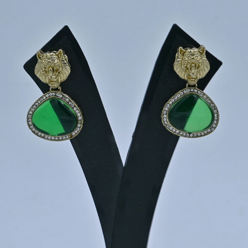Elegant Tiger Motif Earrings with Transparent Green Stone